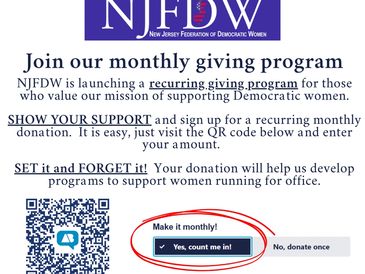The New Jersey Federation of Democratic Women (NJFDW) is an organization of dedicated women committed to supporting each other and advancing Democratic political goals through networking, community activism, and engagement.